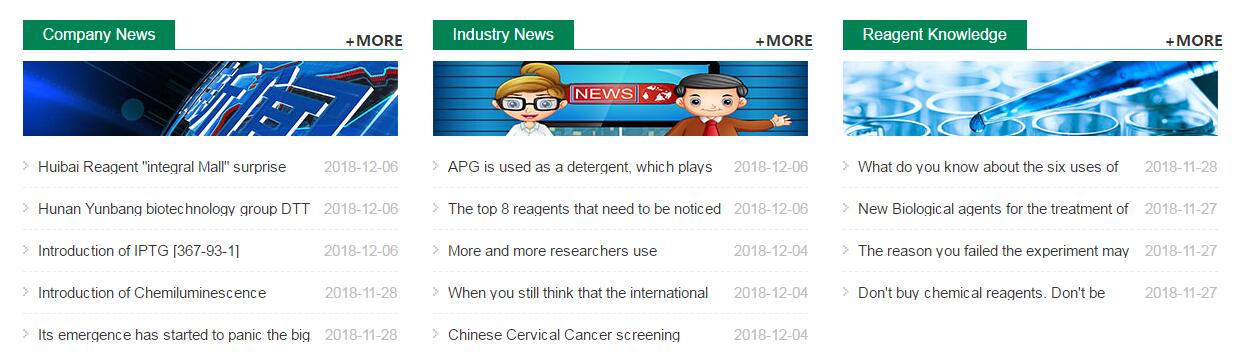 In order to facilitate foreign users to find products more quickly and timely understand the content of industry information, we set up the "Huibai Reagent" mall English station. HuibaiReagent English Station continues to adhere to the principle of "credibility as the basis of enterprise survival", in the home page set up 5 integrated plates, each plate with clear functions, rich content, convenient for you to quickly obtain the products and services you want information.